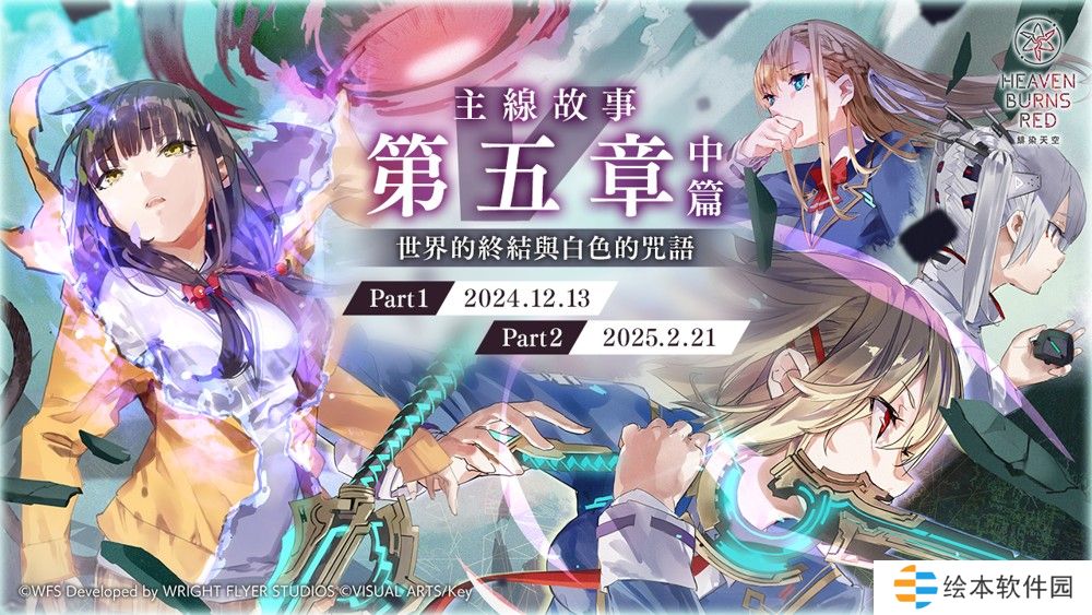 Wright Flyer Studios × Key 戏剧性 RPG《绯染天空 Heaven Burns Red》于近日举办的直播中,解禁了主线故事第五章中篇「世界的终结与白色的咒语」的主视觉和预告影片。