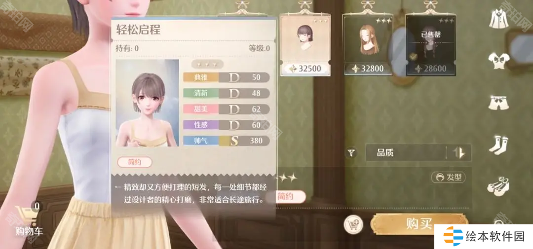 1、在花愿镇的马尔克斯服装店购买轻松启程发型