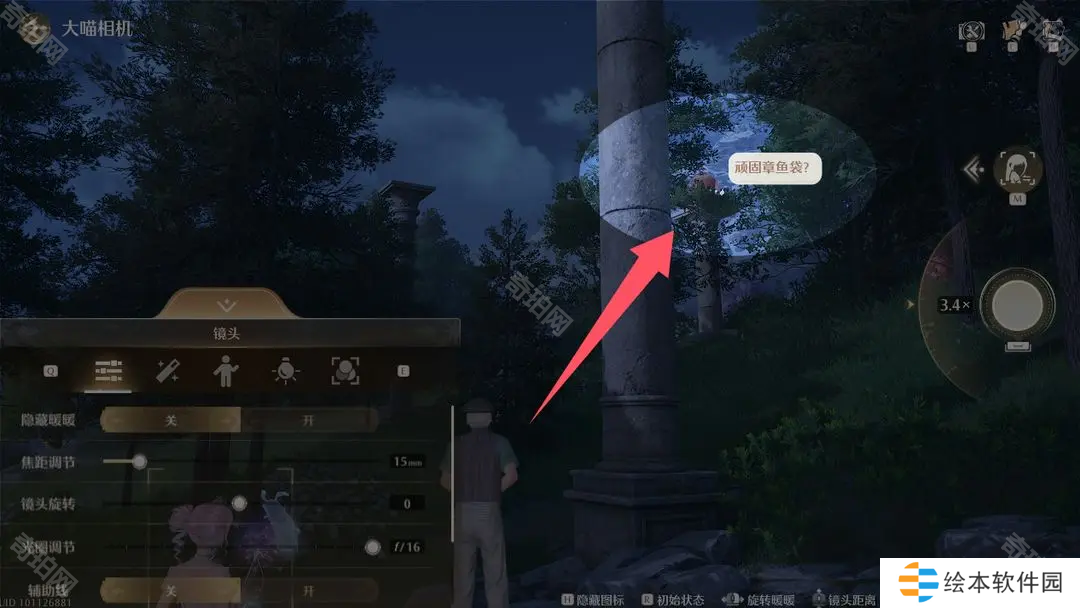 1、在NPC斯菲丹特朝向的柱子旁可以发现顽固章鱼,我们需要惊动顽固章鱼,它对我们释放魔气弹的时候进行拍摄即可