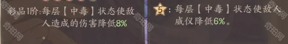 5层毒状态的敌人会受到真实伤害库库掉血,并且输出下降,威仪下降。(威仪降低更容易吃到毒)