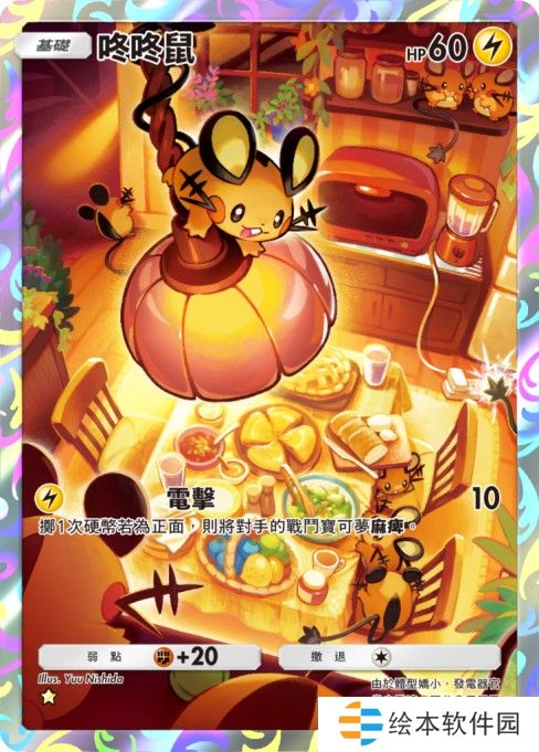 卡牌中描绘了熘进住家的咚咚鼠们,十分可爱。有的在用尾巴吸取住家的电力,有的在观望餐桌上的样子,每一只看起来都过得很随兴自在呢。