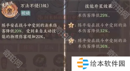 被动技“万法不侵”,让陈平安的机制更加完美。同战力的情况下,方士的攻击力会比武者高一截,而且方士的技能多为群体伤害。这就会导致面对方士为主c的阵容时,陈平安会承受更多伤害,容易暴毙。此技能降低了方士的伤害,减少了陈平安暴毙的概率。