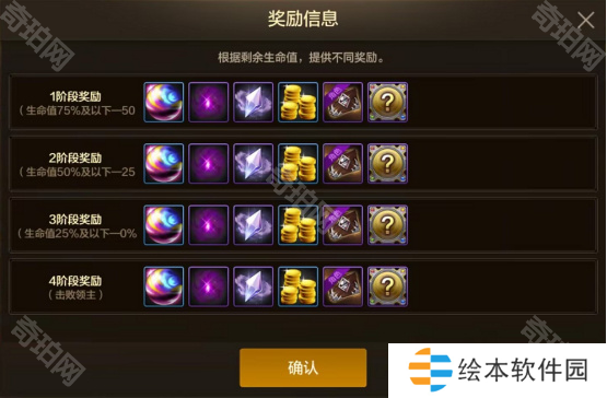 每周一将根据领主的剩余生命值,进行结算并发放炉岩炭、奇迹变换石、西部深渊派对邀请函等奖励。