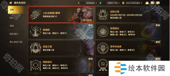 在委托界面下的日常页面即可点击 “小队突袭” 入场。