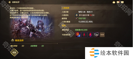 角色入场抗魔值为13880,进入副本需要消耗斯卡迪的印章*30