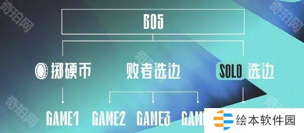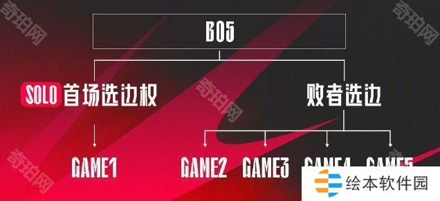 双方队伍各指定1名选手在BO5开始前进行SOLO选边赛决定首场的选边权归属,后续为败者选边
