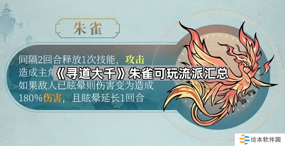 寻道大千朱雀有哪些流派可以玩?朱雀是游戏寻道大千中进攻性最强的灵兽,如果配合击晕使用也是能大大提升其输出能力。许多小伙伴想知道朱雀有哪些流派可以选择,那么接下来就和小编一起看看《寻道大千》朱雀可玩流派汇总吧。