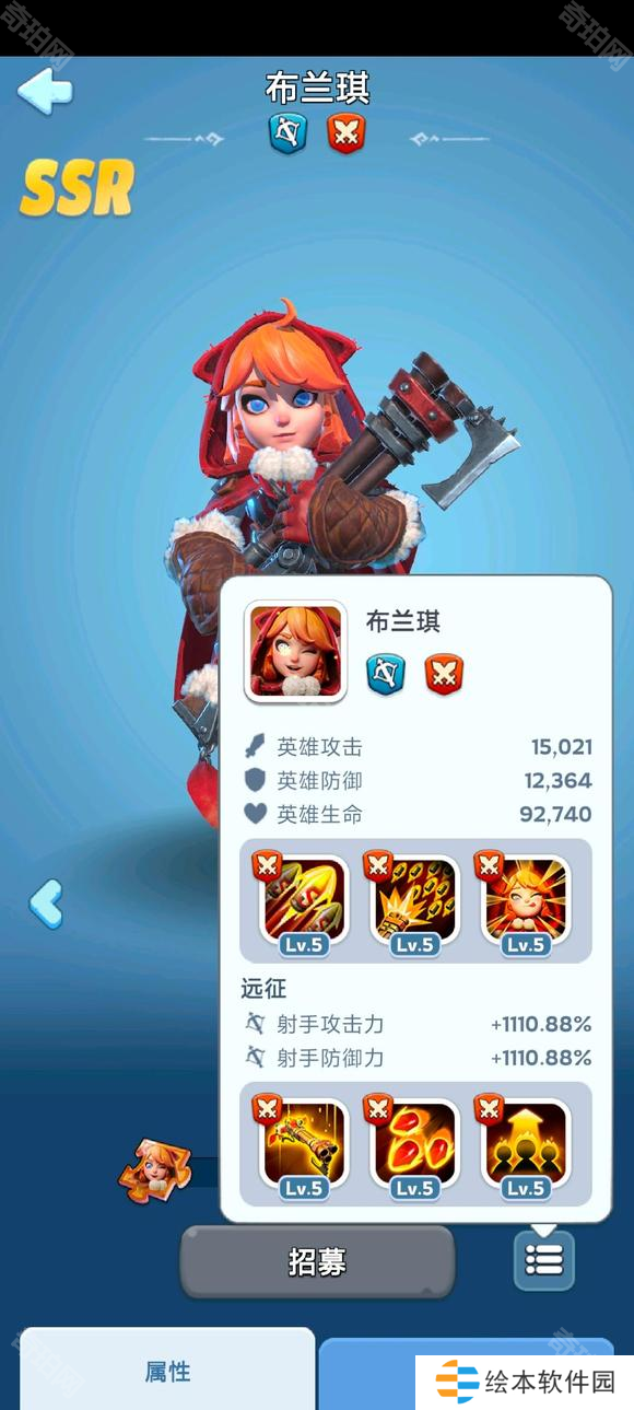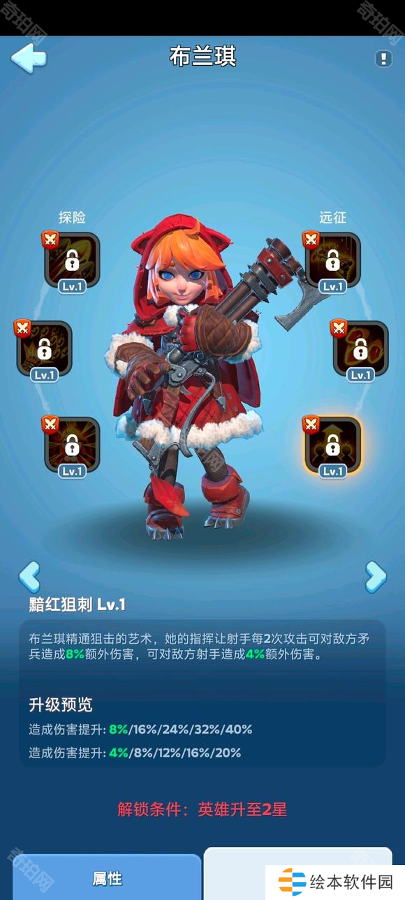 布兰琪精通狙击的艺术,她的指挥让射手每2次攻击可对敌方矛兵造成8%额外伤害,可对敌方射手造成4%额外伤害。