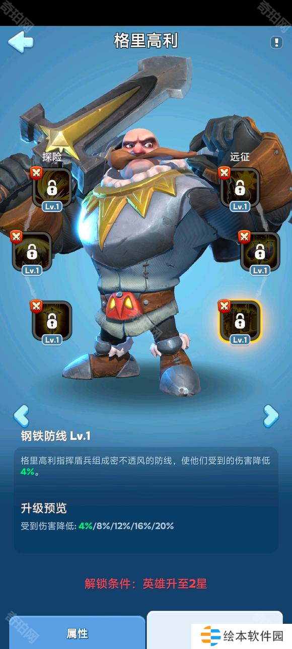 格里高利指挥盾兵组成密不透风的防线,使他们受到的伤害降低4%。