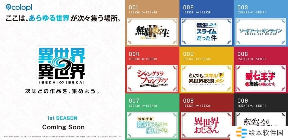 COLOPL 开发中的移动平台及PC 平台新作游戏《异世界∞异世界》,官方公布将在「1st SEASON」陆续登场的 9 部热门动画作品。官方表示,《异世界∞异世界》是款会有各式热门动画作品陆续登场,且能让玩家以各种方式享受喜爱角色的游戏。