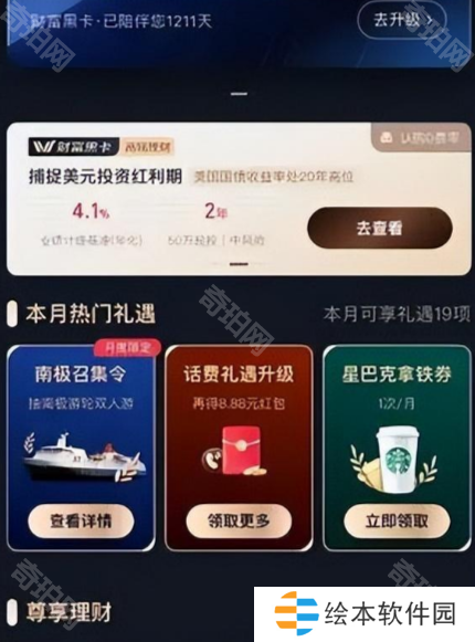 如:黑卡用户每个月有免费的星巴克和免费APP会员可以领
