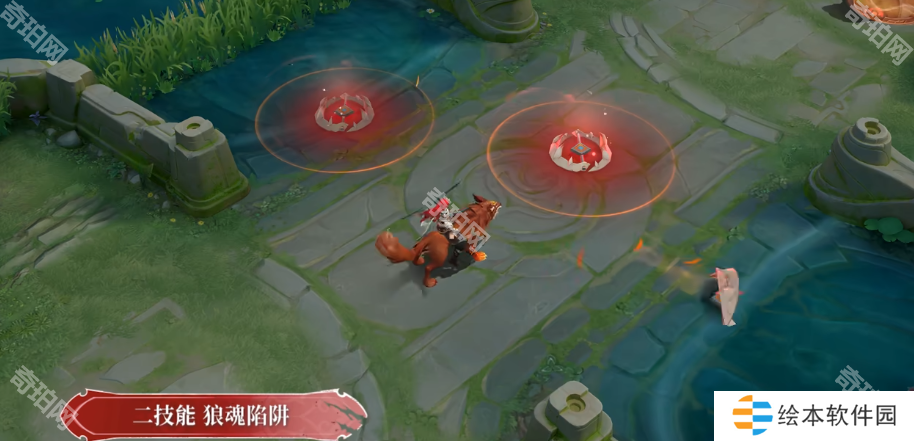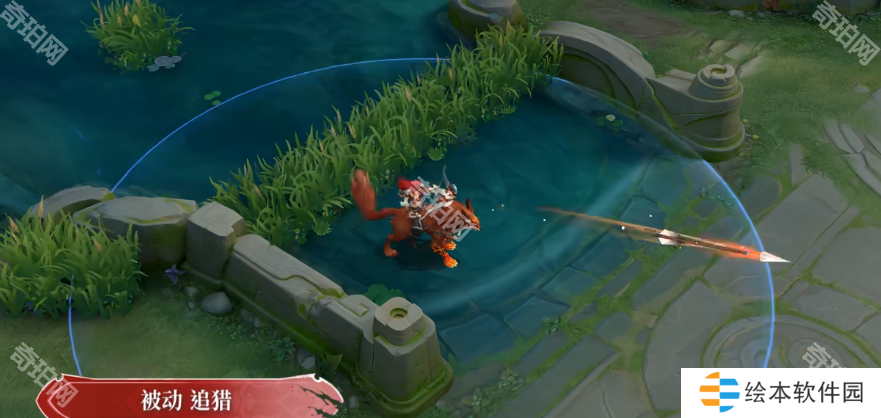 苍驭狼挽弓射箭,驰骋战场;日光映照在他火红的发上,橙金狼魂环绕周身