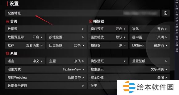 1、打开电视设置,点击上方的“配置地址”。
