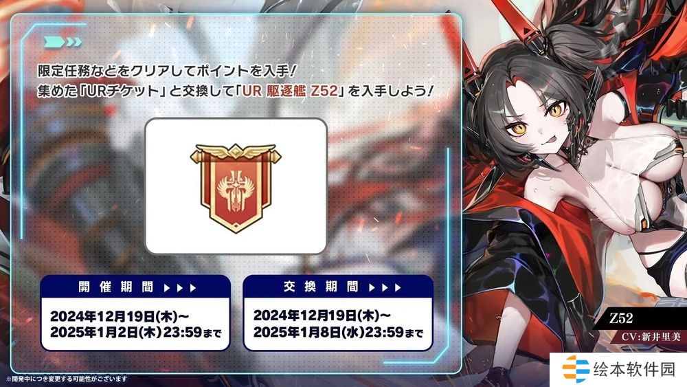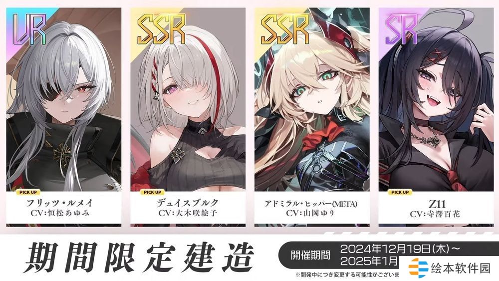 新舰船中,Z52 可使用「UR 券」兑换,Z9 为活动道具的累计奖励,其馀四名舰船将于限时建造登场。此外,希佩尔将军(META)为限时建造的 PICK UP 对象,同时也能使用活动道具兑换。