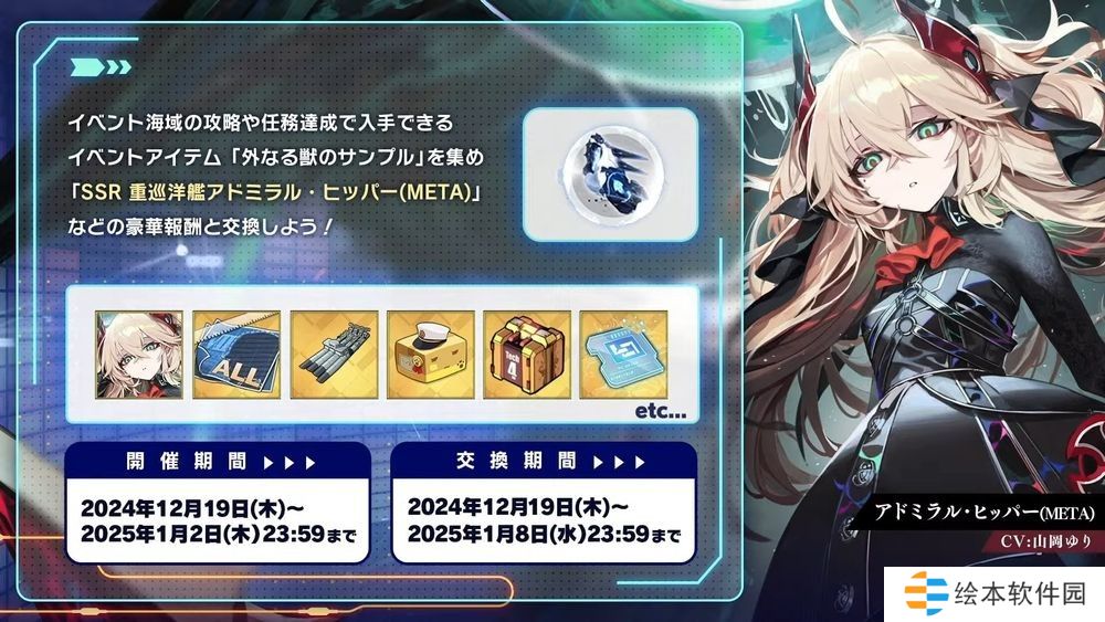 「齐柏林伯爵」、「能代」等 SSR 舰船登场的「正月活动」,以及可获得「吸血鬼」的换装的迷你活动「夜姫的圣夜」亦将于 12 月 19 日开跑。