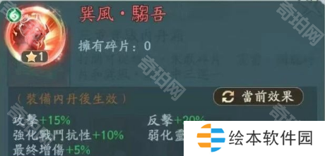 效果:攻击+15%,反击+20%,强化战斗抗性+10%,弱化灵兽+10%,最终增伤+5%
