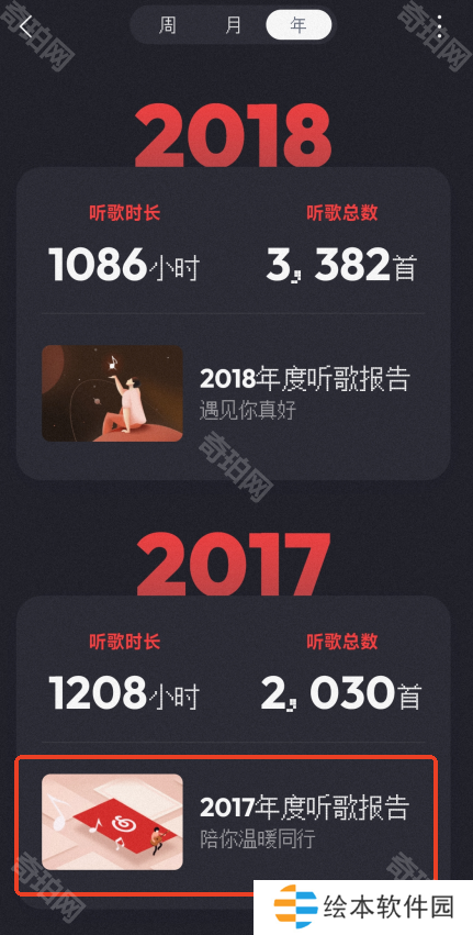 2、在新页面中往下滑动即可查看从使用网易云音乐以来所有的年度听歌报告