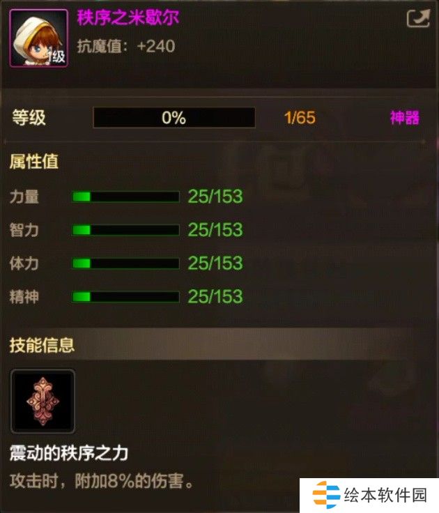 技能信息:攻击时附加8%/10%/12%/15%的伤害(依序为普通/高级/稀有/神器技能)