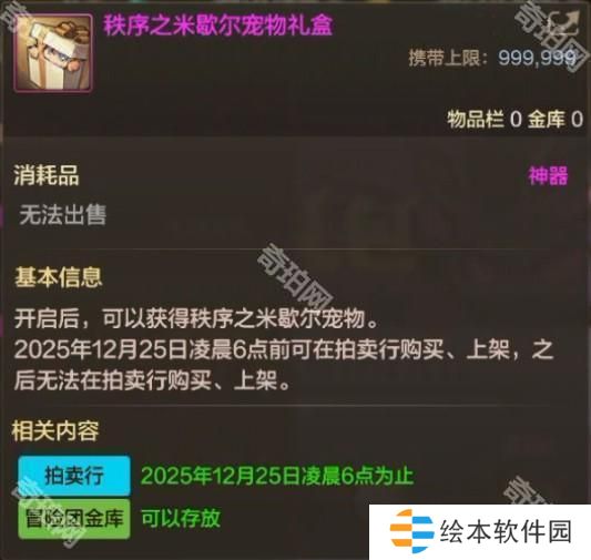 混沌秩序之使徒宠物神秘礼盒是账号绑定的,但是开出来宠物礼盒是可交易的。