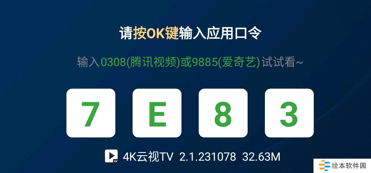1、智能电视端通过输入4位软件口令进行软件安装