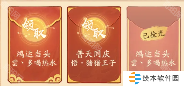 红包总计有三种类型分别是普天同庆、鸿运当头、福星高照!每类红包只能开3个!