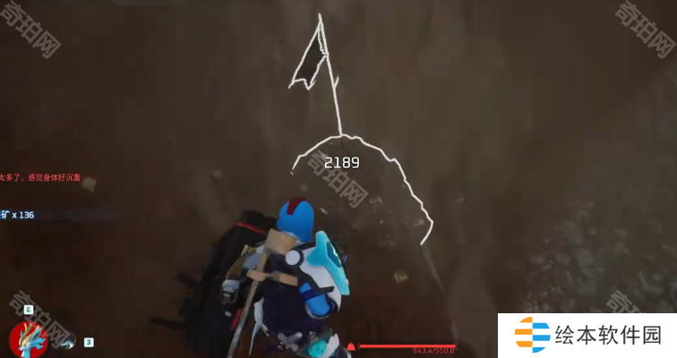 4、最接近铬铁矿时光圈会呈现红色,我们需要在这个范围内慢慢走,直到铬铁矿自动蹦出来