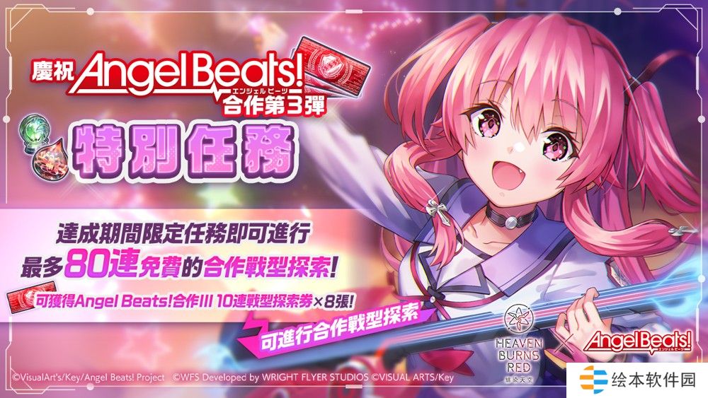 Wright Flyer Studios × Key 戏剧性 RPG《绯染天空 Heaven Burns Red》于 2024 年 12 月 27 日(五)10:00 起,决定举办 Angel Beats! 合作活动第 3 弹。
