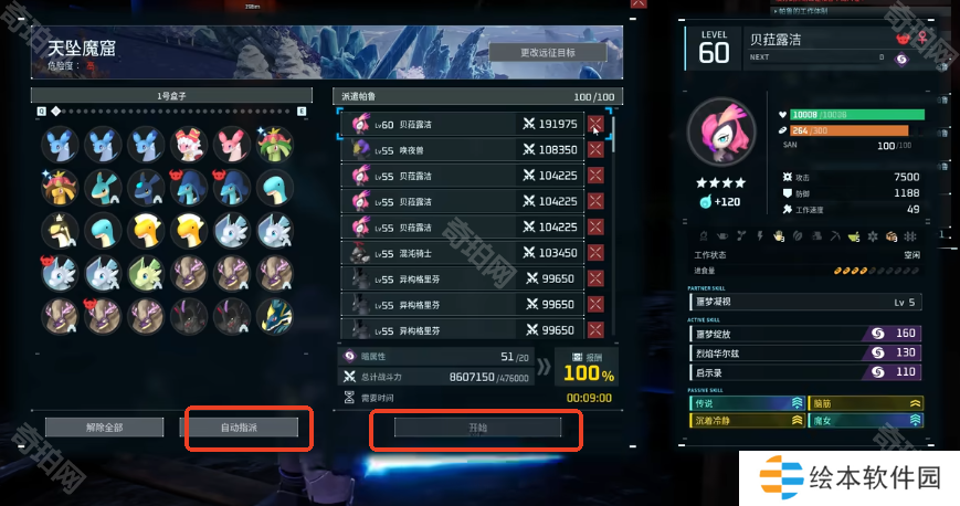 选择要远征的地图后点击左下角的自动指派会自动编入帕鲁