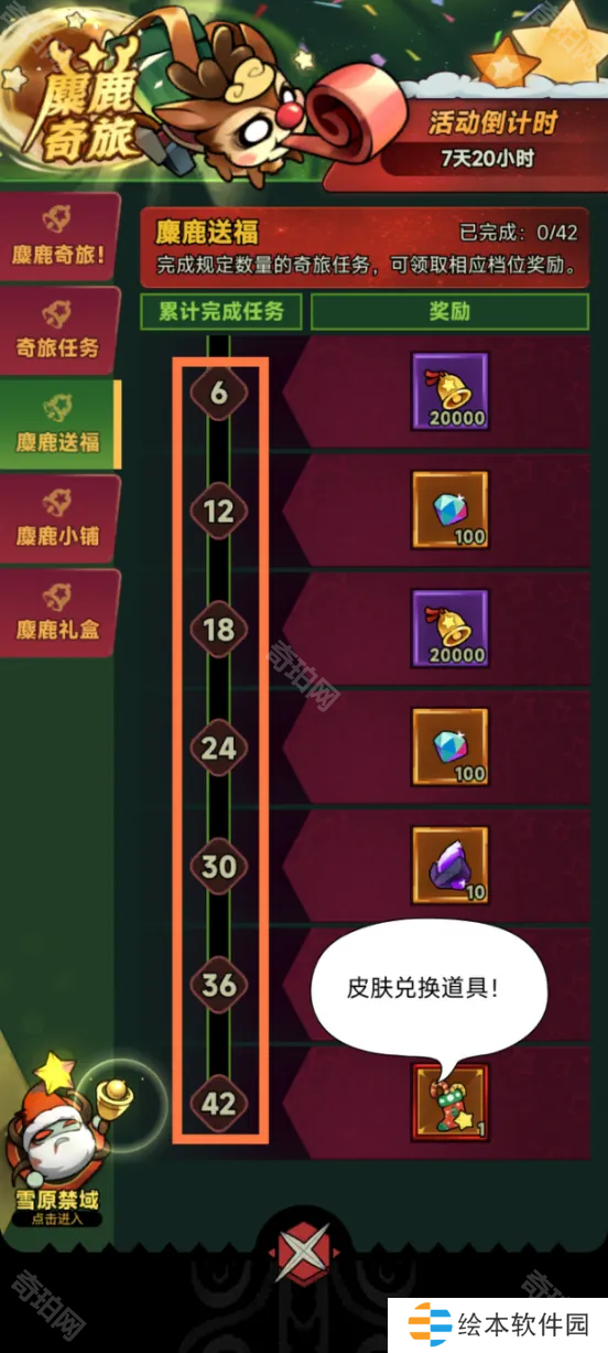 做满7天共42次可以领取重要道具[心愿之袜],使用这个道具玩家可以在四款冬日活动专属皮肤中免费兑换一套,千万不要错过了。