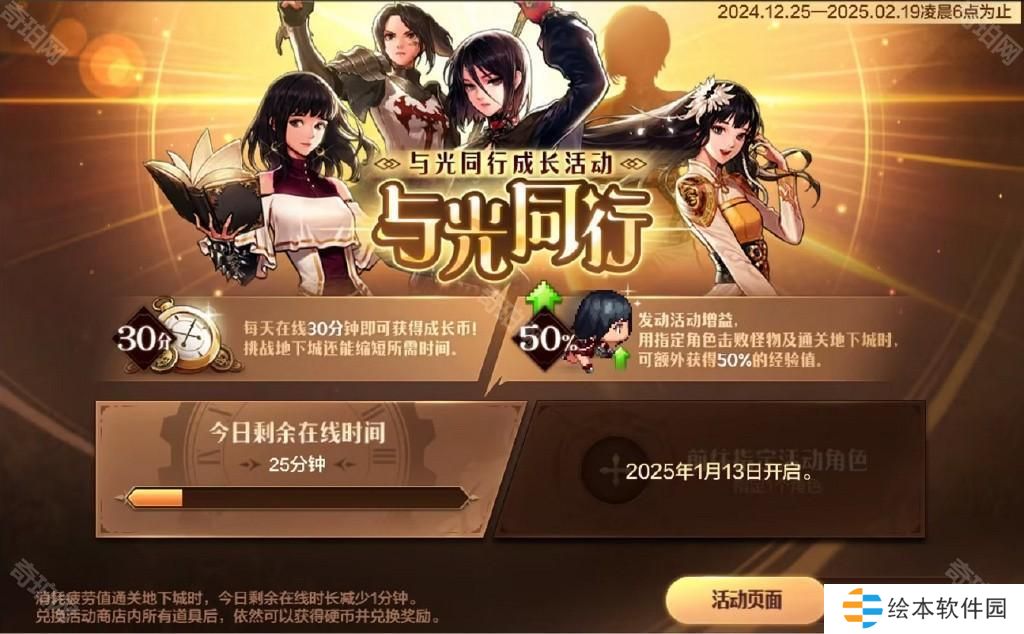 每天在线30分钟可获得成长币,挑战地下城还能缩短所需时间。