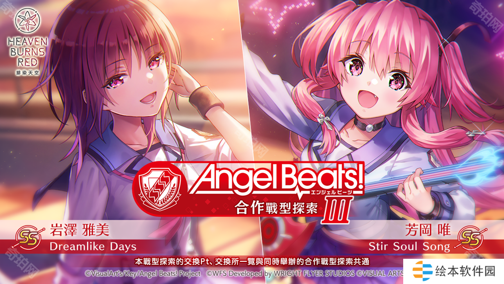 「Angel Beats! 合作战型探索 Ⅲ」中,SS [Dreamlike Days] 岩泽雅美、SS [Stir Soul Song] 芳冈唯期间限定精选,出现机率上升。