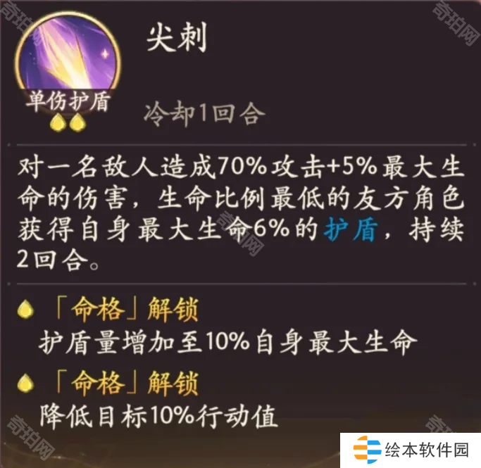 能够降低100%行动值,且触发被动的前提下可以锁定任意阵位的敌人,既能够针对前排也够针对后排。