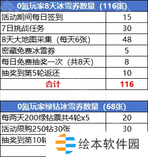 2、0氪玩家8天免费冰雪券数量(116张)