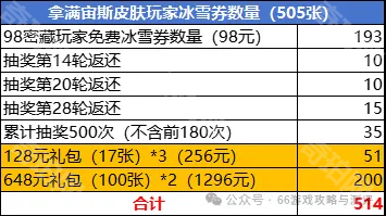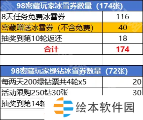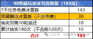 3、98密藏玩家免费冰雪券数量(174张)