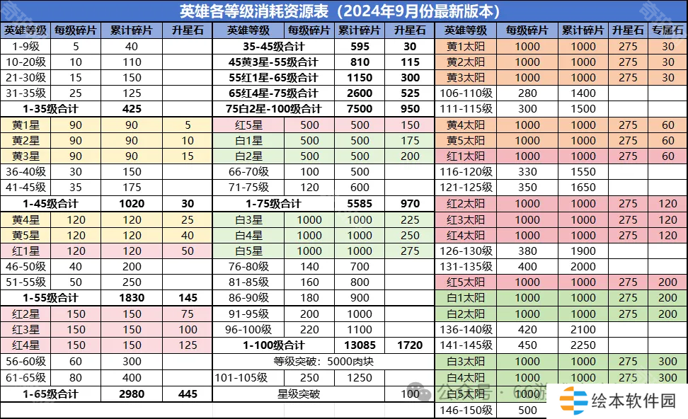 5、新英雄关键等级(35级黄3星,55红1星,红4星和75白2星)