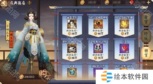 活动期间,玩家能使用活动中获得的「庆典币」在庆典商店中兑换小袖之手新皮肤「幽流影」、联动角色印花、联动限定头像框、表情包、插画、随机SSR/SP式神召唤券、御行达摩等奖励