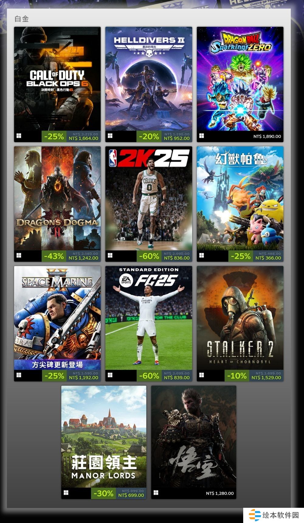 今年新发行、最畅销的 11 款游戏(发行后的头两周收益名列前茅游戏、未依照排名)包括《使命召唤:黑色行动 6》、《绝地潜兵 2》、《七龙珠 电光炸裂 ZERO!》、《龙之信条 2》、《NBA 2K 25》、《幻兽帕鲁》、《战锤 40K:星际战士 2》、《EA SPORTS FC 25》、《潜行者 2》、《庄园领主》、《黑神话:悟空》。