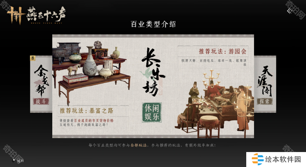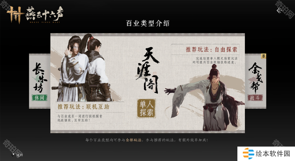 百业系统将提供三种百业类型,满足不同玩家需求:单人探索、休闲娱乐、多人战斗
