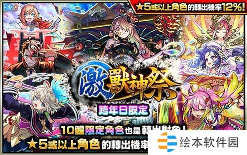 而「激兽神祭 〜跨年日限定〜」则是初次转蛋(包含初次单抽与初次 10 连)时★5 以上角色出现机率高达 24%的转蛋活动。