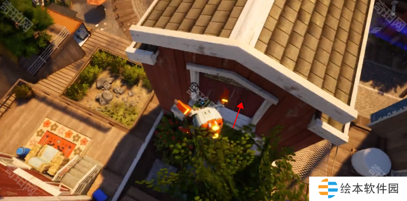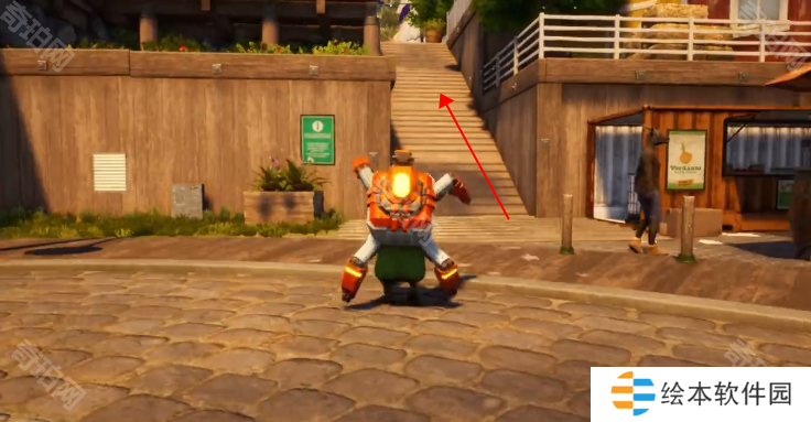2、往楼梯上去,然后左转,从白色墙壁部分爬上去