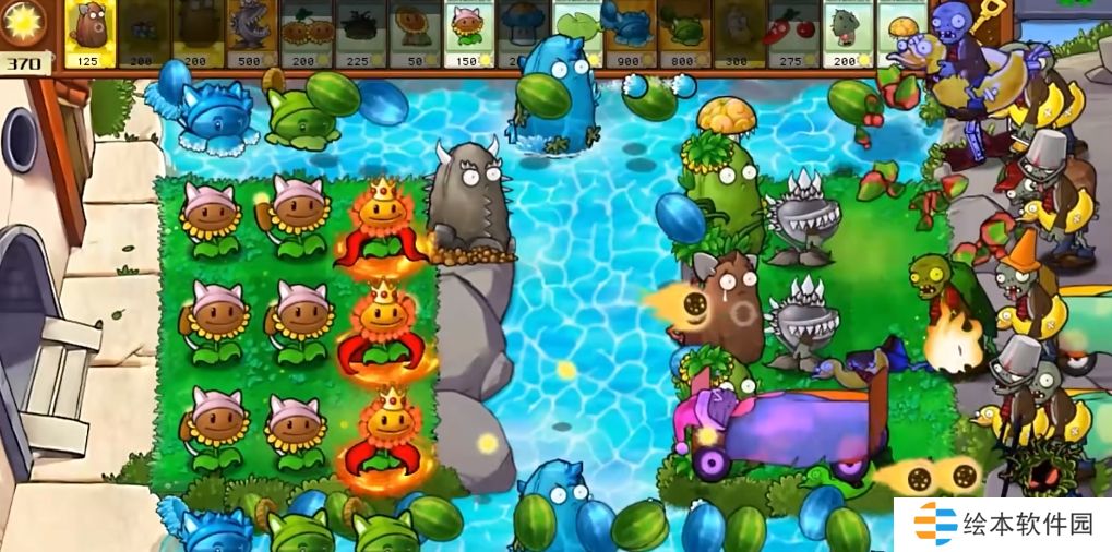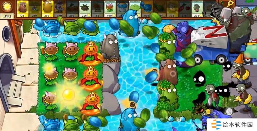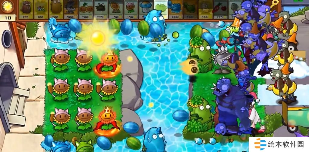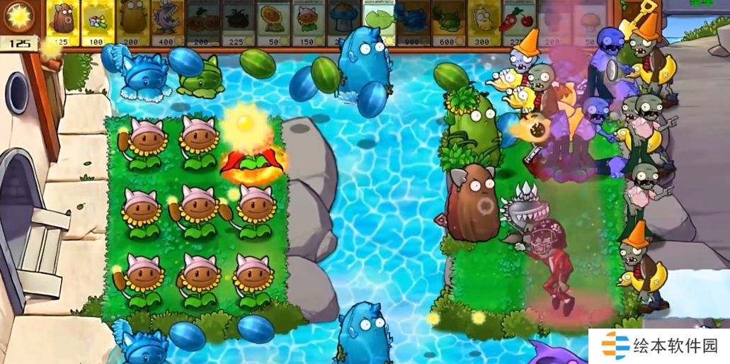 深海高坚果:如果该植物种在水池,则每1.5秒发射2颗冰豆子弹,减速啃咬自己的僵尸15秒+反伤20/s。