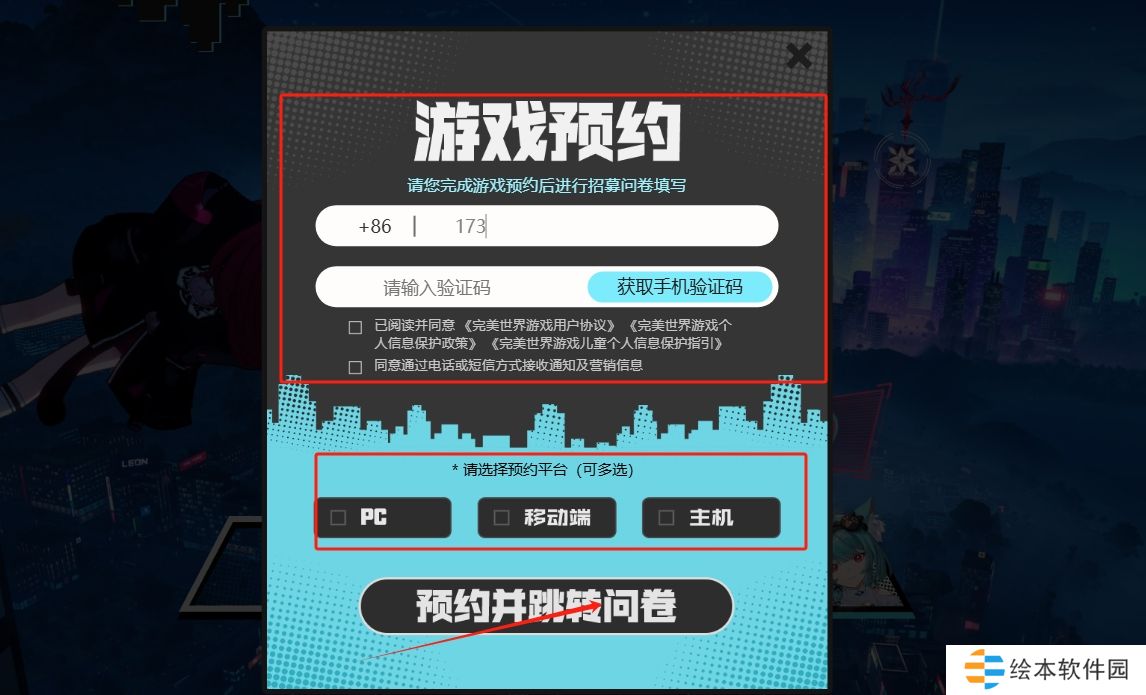 2、选择预约平台,完成游戏预约并跳转问卷。