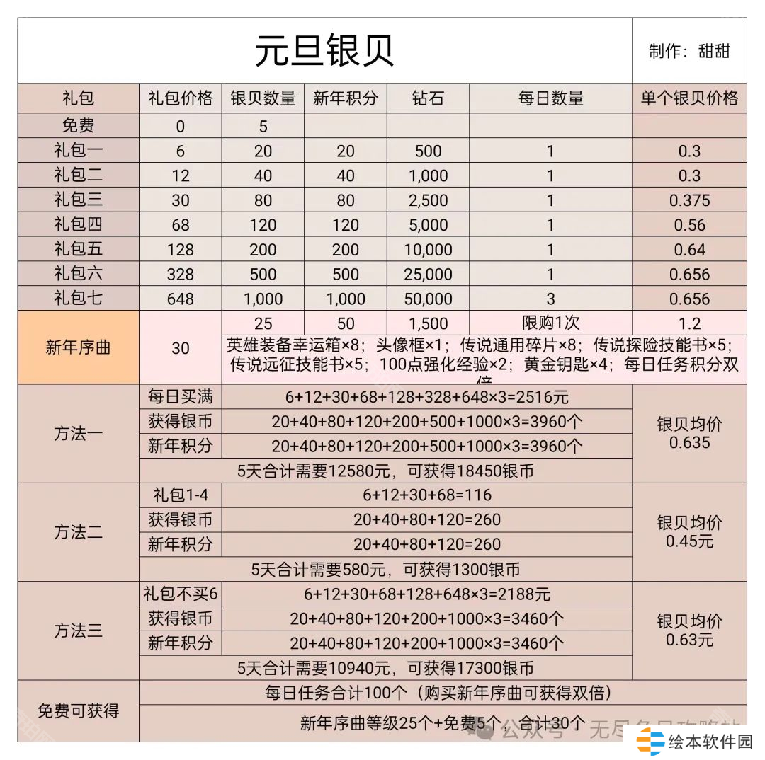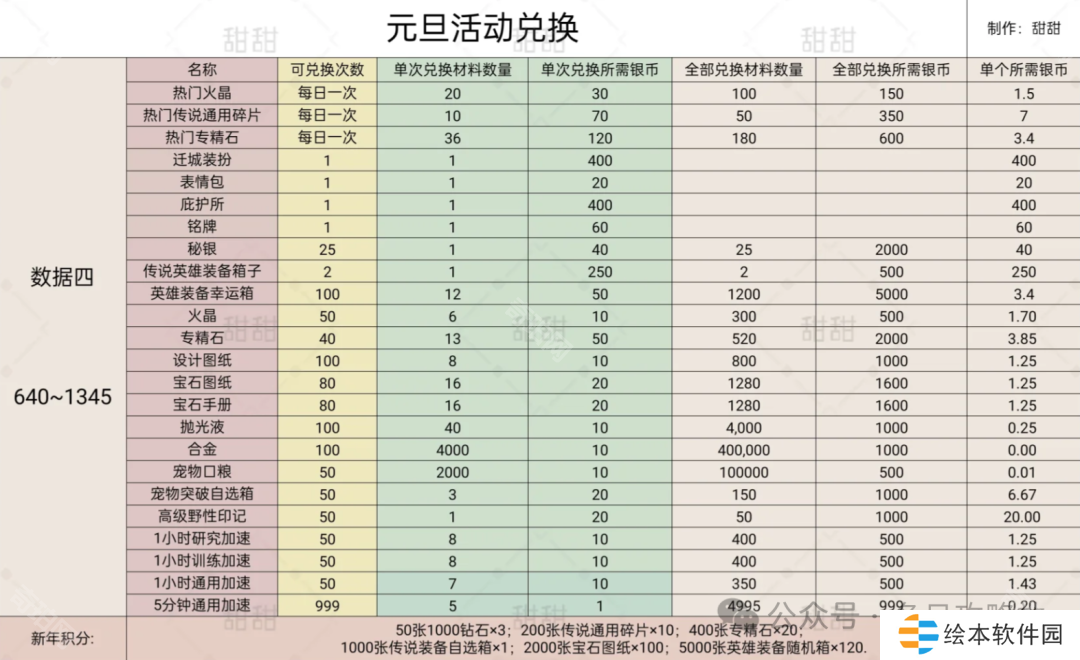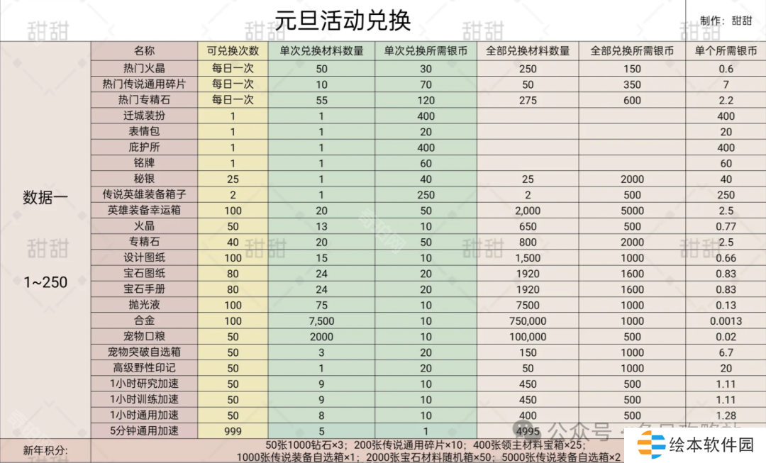2、本次元旦活动主要就是热门的道具去兑换(每日一次,基本都划算);然后迁城特效需要注意银贝,文末有计算;