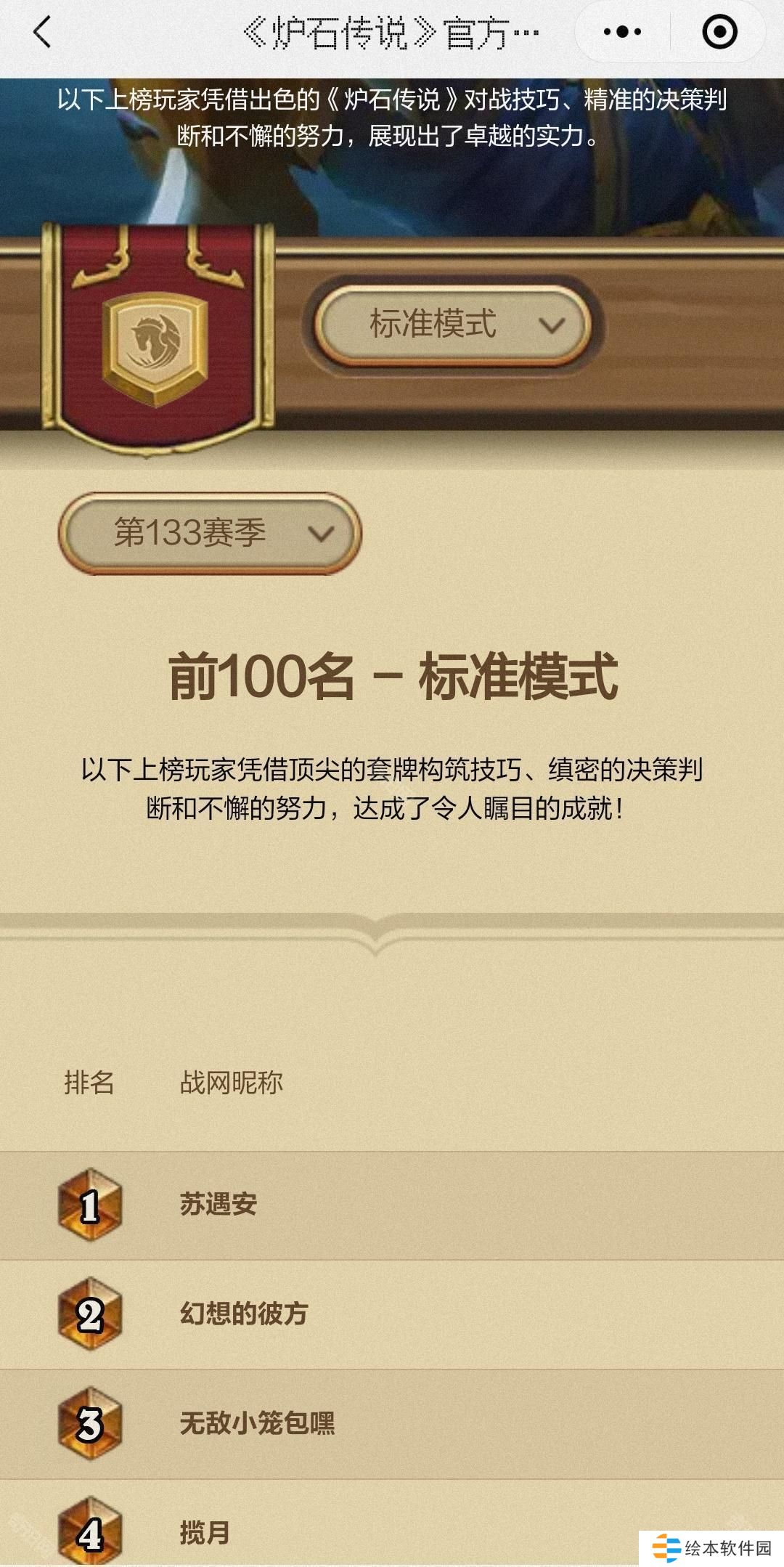 在微信搜索炉石传说小程序,点击排行榜即可查看