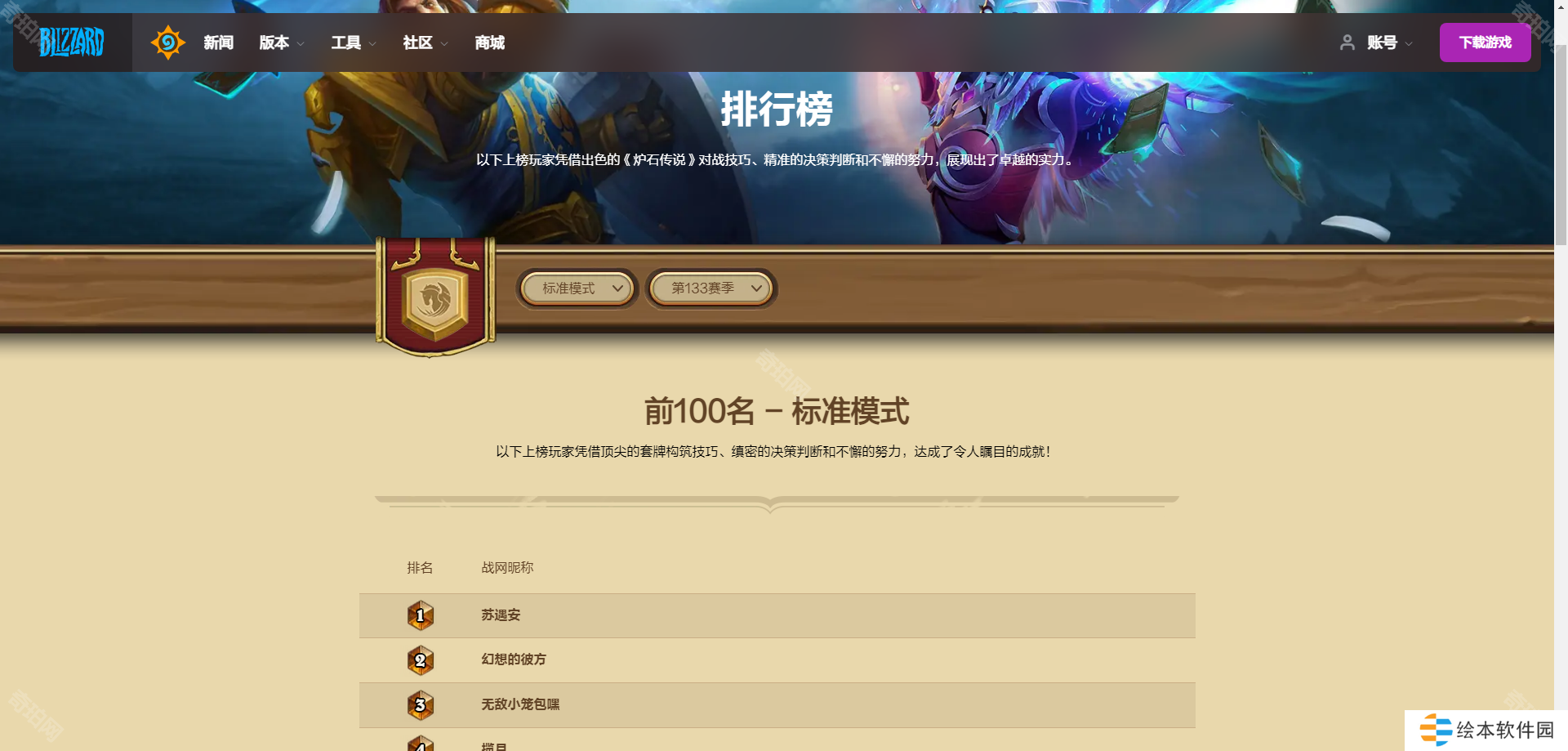炉石传说官网排行榜最新榜单查看地址:https://hs.blizzard.cn/community/leaderboards/index.html