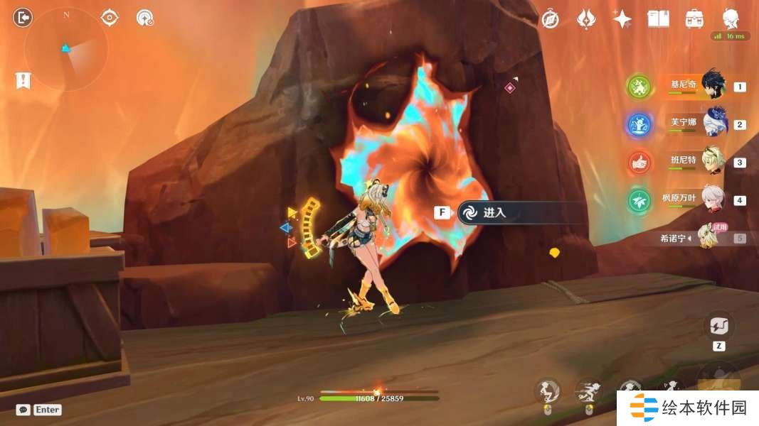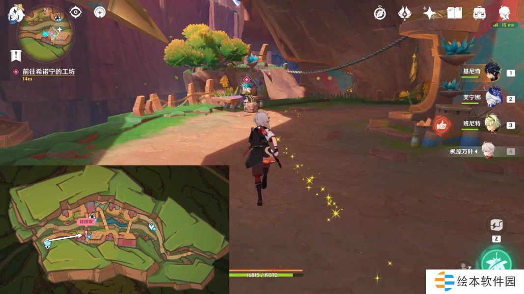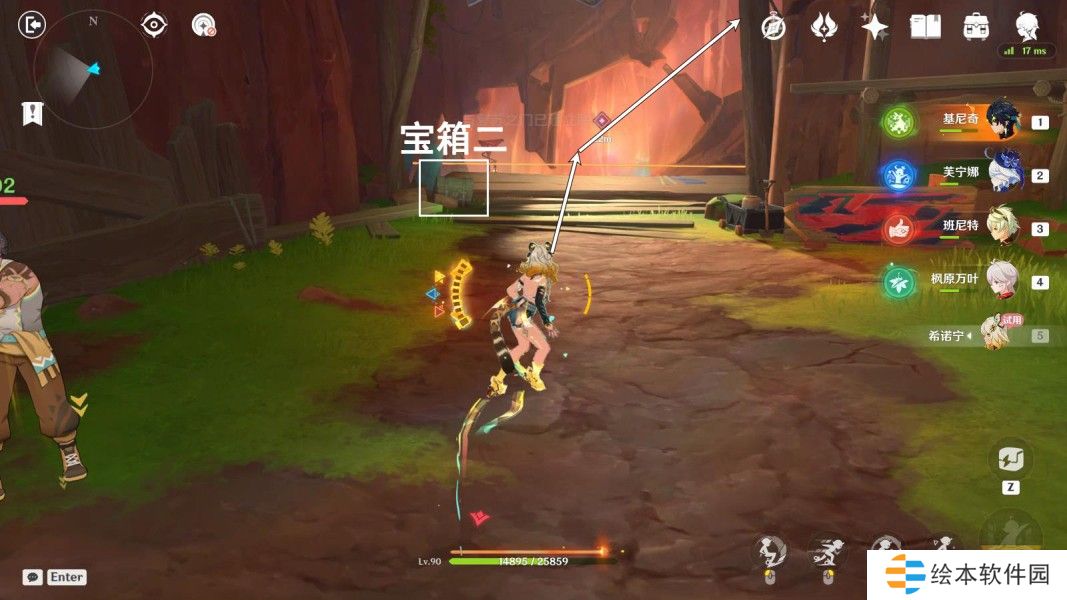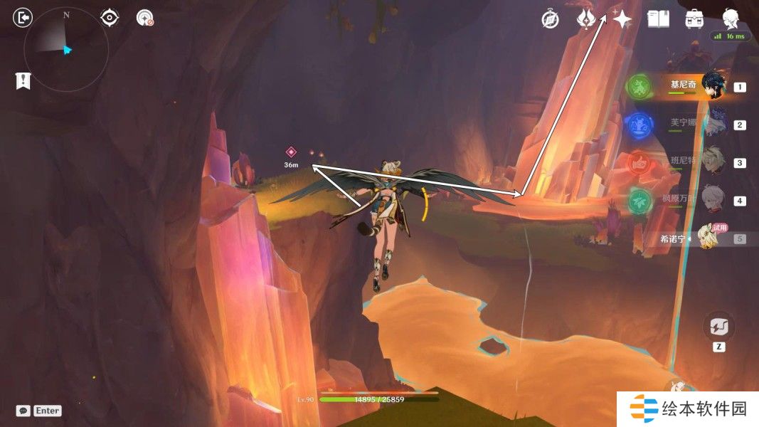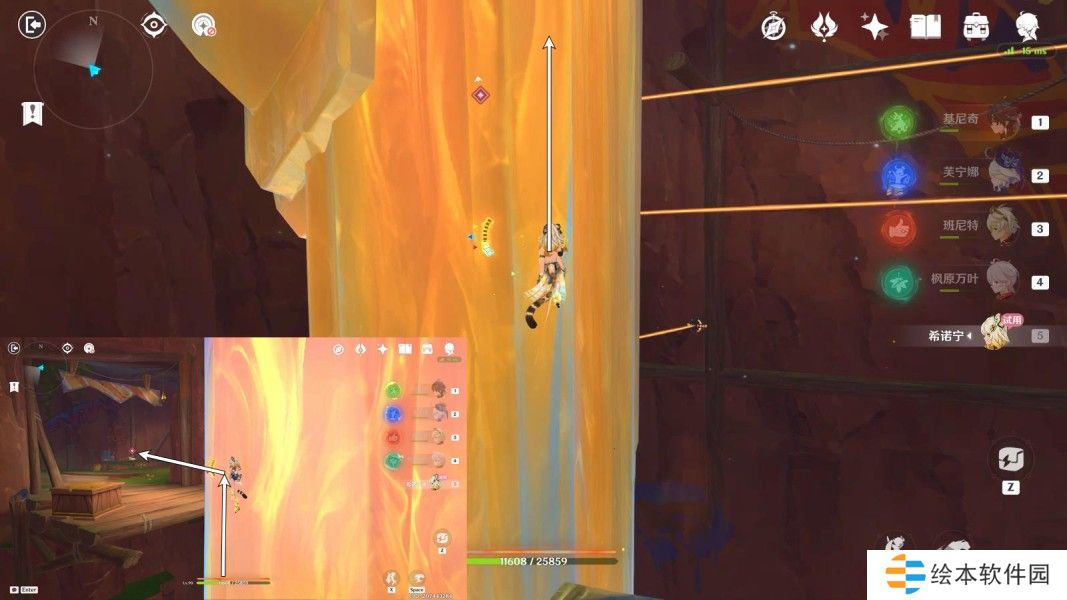 希诺宁使用战技,按图中指引路线走,与希诺宁对话3分钟