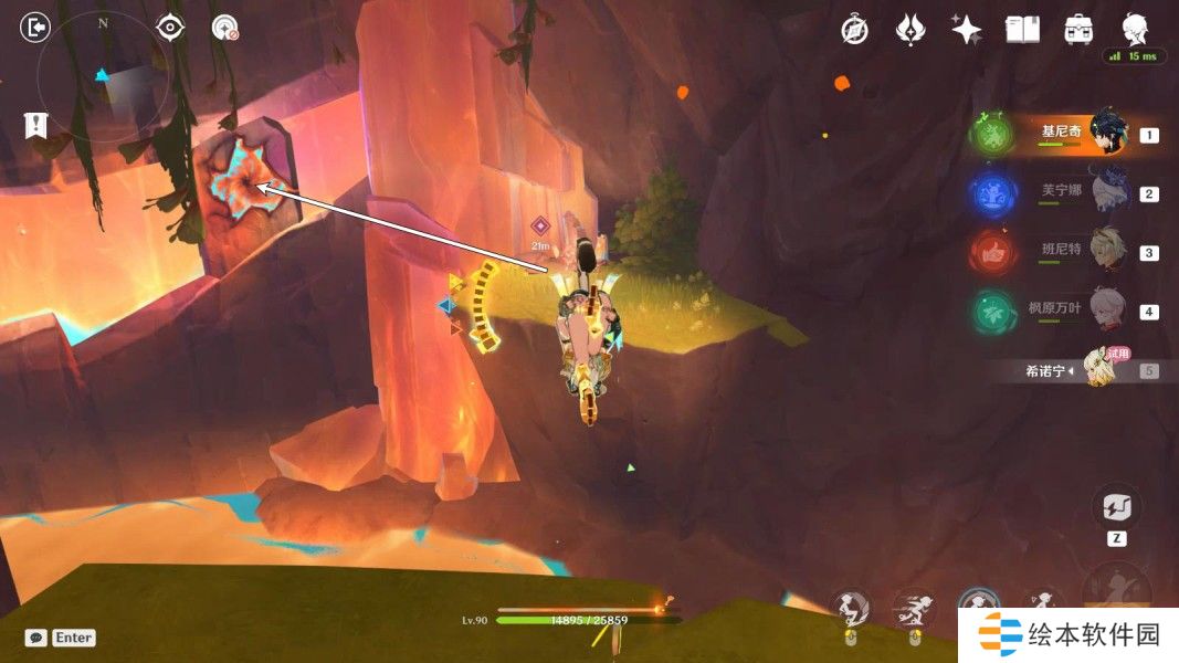 ▶往地图的西方向走,攀爬上侧面固态燃素;
