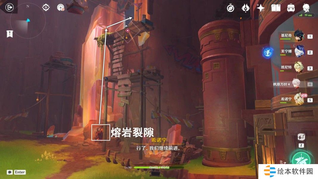 击败龙形武士,获得宝箱③,启动机关,进入熔岩裂隙