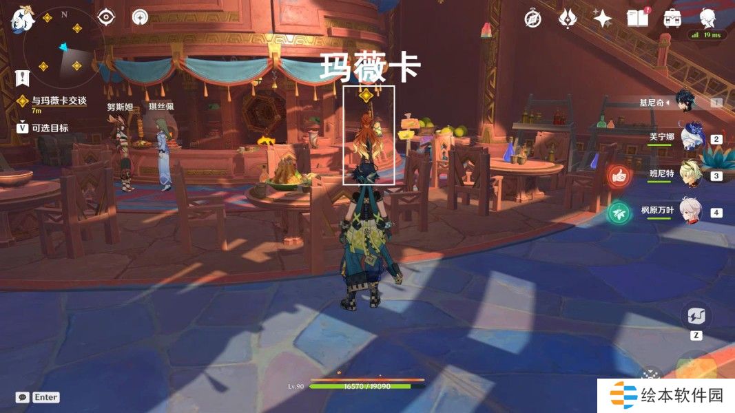 往地图的东南方向走,与玛薇卡对话1分钟