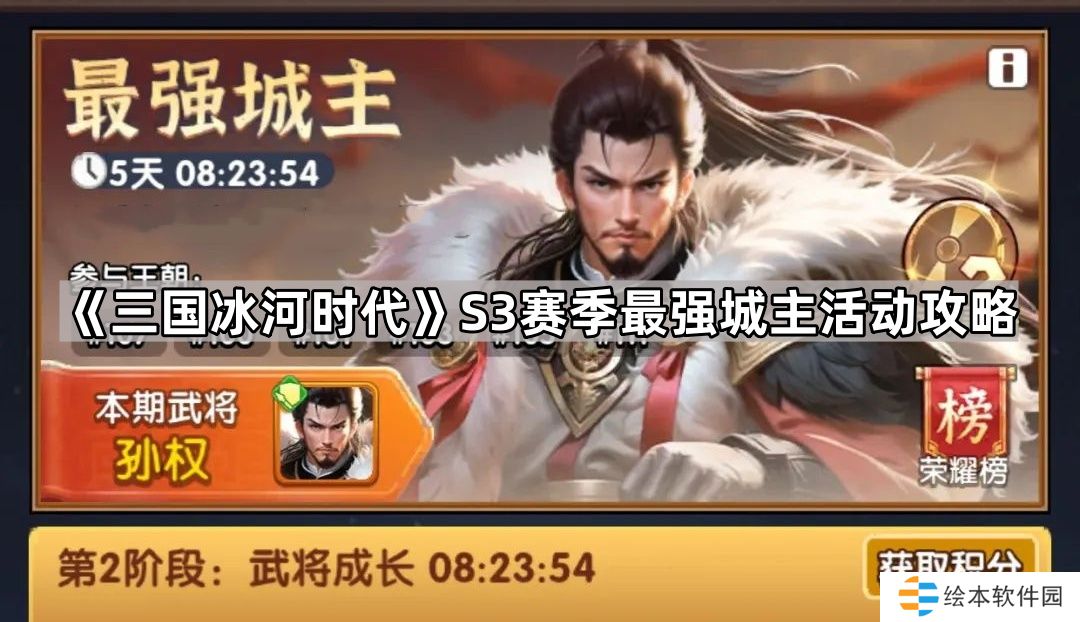 三国冰河时代S3最强城主怎么玩?最强城主是游戏三国冰河时代中的一个竞争玩法,我们最后要比谁是最强的城主,最后会根据我们在活动中获得的积分来发放奖励。在S3赛季的最强城主中我们能获得武将孙权,那么接下来就由小编给大家带来S3赛季最强城主攻略,需要的小伙伴不要错过了。